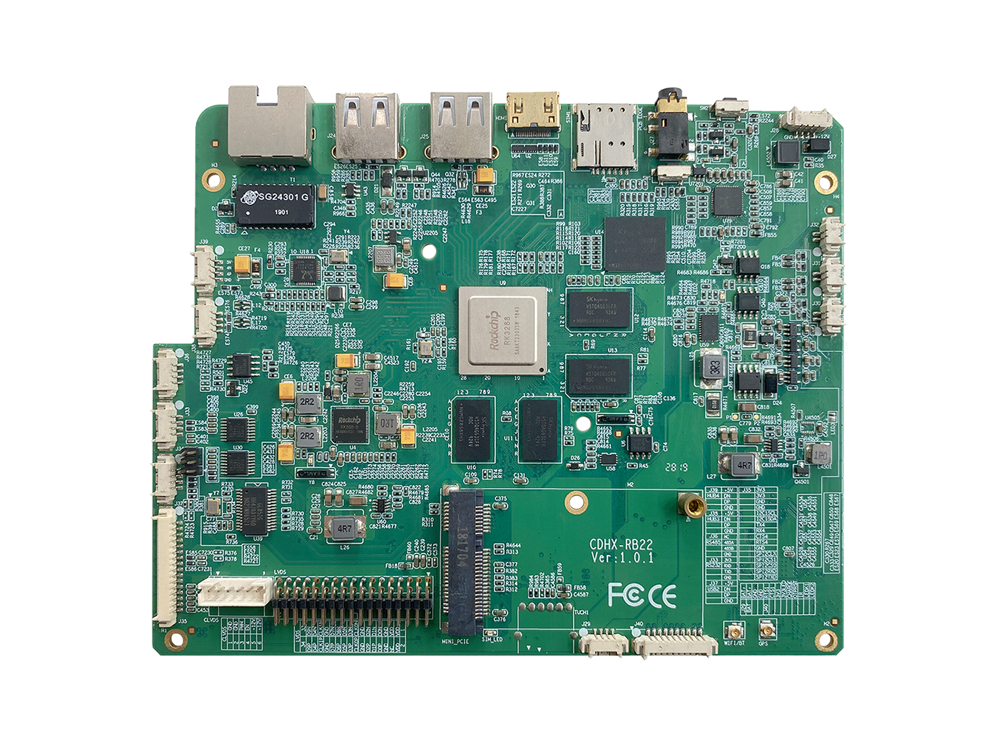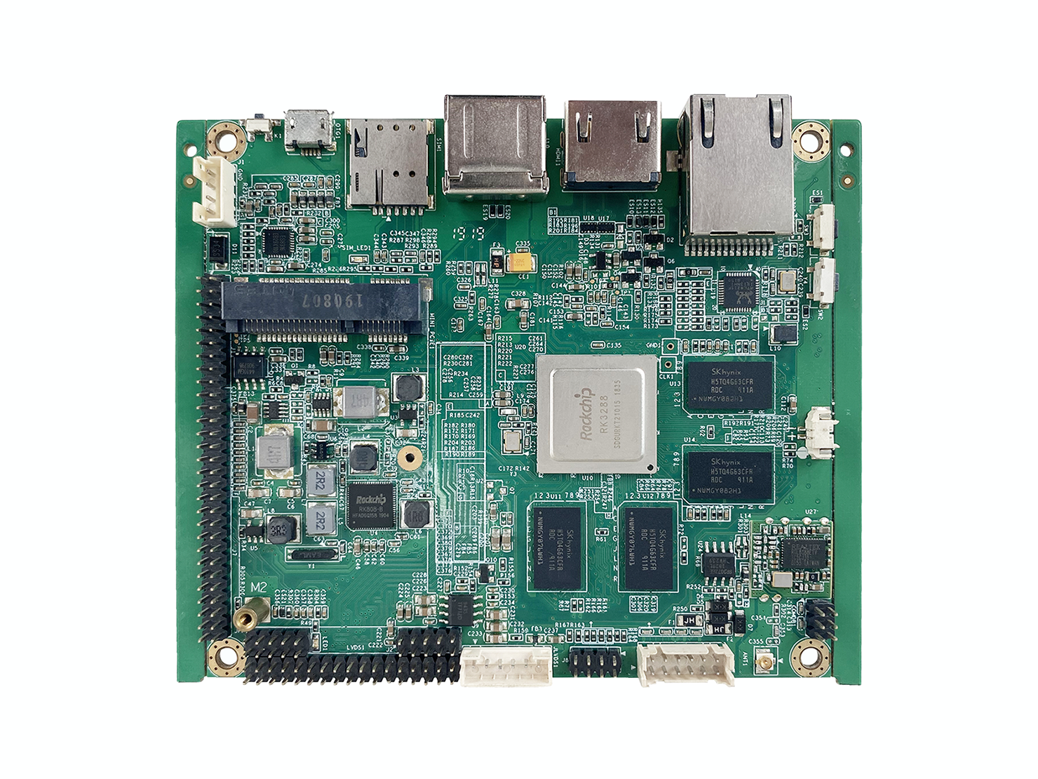 主控芯片采用RK3288四核处理器,采用低漏电,高性能28nm HKMG 工艺艺,ARM Cortex-A17四核架构,核心主频均可达1.8GHz,拥有1MB二级缓存;支持4K H. H.264 和 10bits H.265视频解码,1080P 多格式视频解码,支持HDMI和及LVDS(双通道10BIT)输出双显,完美支持3840x2160分辨率;图形系统:ARM Mali-T764 GPU,支持TE,ASTC,AFBC 技术, 支持OpenGL ES1.1/2.0/3.0,Open VG1.1,OpenCL,DirectX11。内嵌高性能2D 加速硬件;硬件安全上系统支持 HDCP 2.X;接口方面,可支持HDMI2.0和千兆以太网卡。